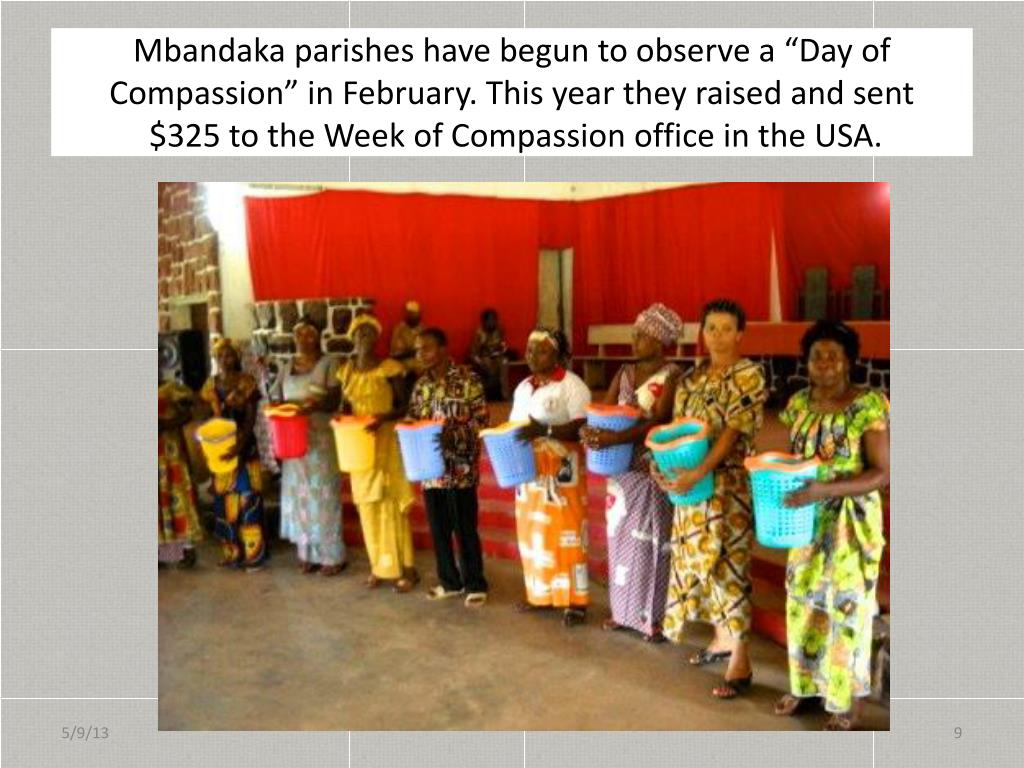 Mbandaka parishes have begun to observe a “Day of Compassion” in February. This year they raised and sent $325 to the Week of Compassion office in the USA.