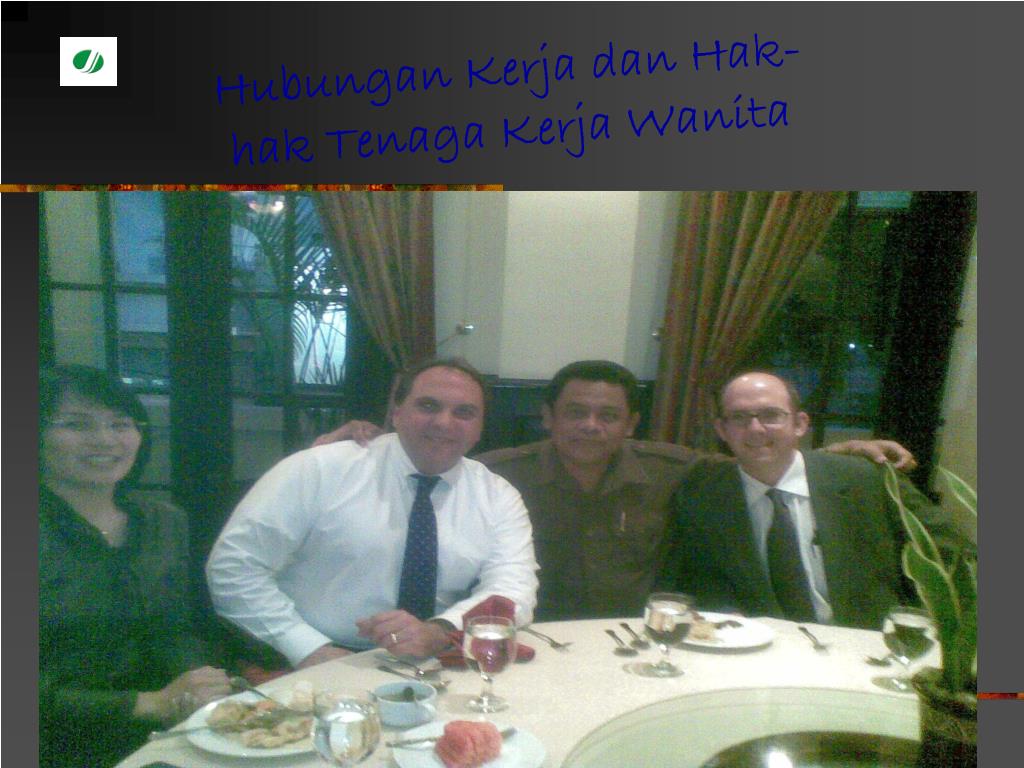 Dasar Hukum • UU No.13 Th 2003 ttg Ketenagakerjaan • Kepmennaker No.224/Men/2003 ttg Kewajiban Pengusaha yg Mempekerjakan Perempuan pd Malam Hari • Konv.ILO No.100 (UU No.80/57) Pengupahan yg sama bagi Laki2 & Wanita utk Pekerjaan yg Sama Nilainya • Konv.ILO No.111 (UU No.21/99) Diskriminasi Dlm Pekerjaan & Jabatan • Konv.PBB (UU No.7/84) Penghapusan Diskriminasi Terhadap Perempuan