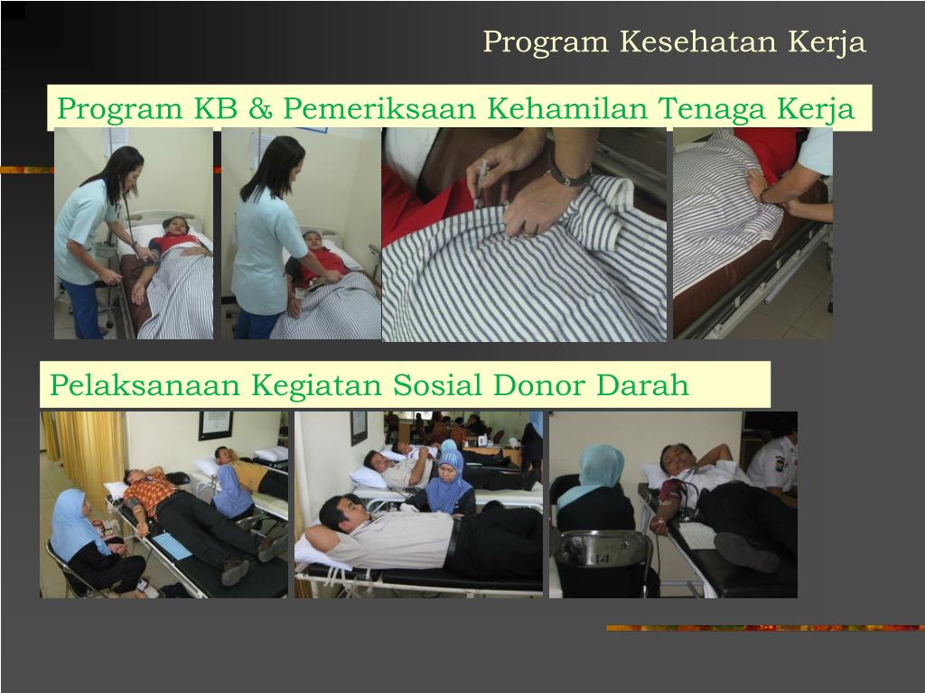Program Kesehatan Kerja Program KB & Pemeriksaan Kehamilan Tenaga Kerja Pelaksanaan Kegiatan Sosial Donor Darah
