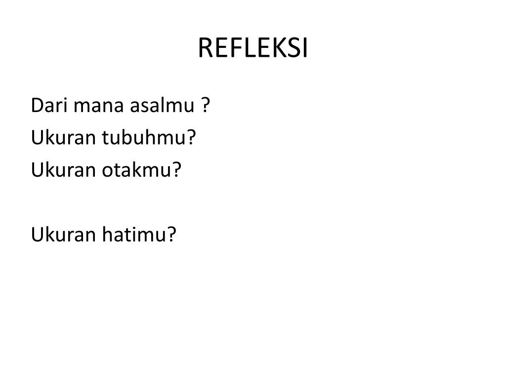 REFLEKSI Dari mana asalmu ? Ukuran tubuhmu? Ukuran otakmu? Ukuran hatimu?