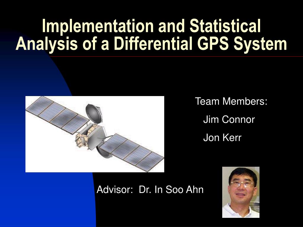 Implementation and Statistical Analysis of a Differential GPS System Team Members: Jim Connor Jon Kerr Advisor: Dr. In Soo Ahn