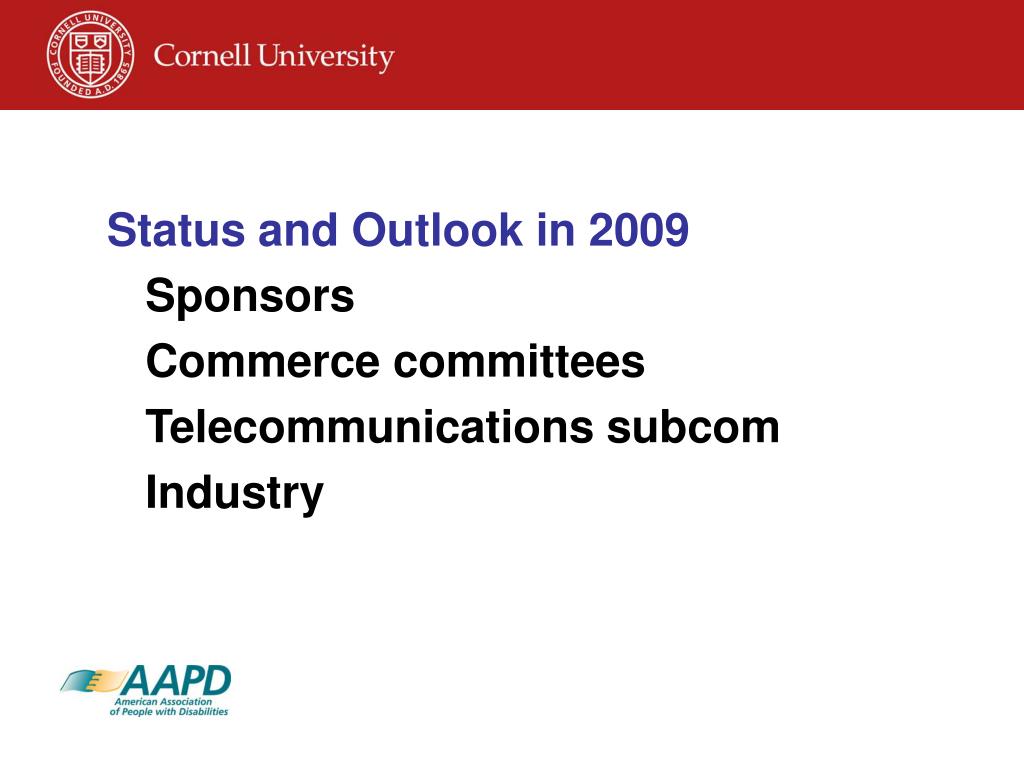Status and Outlook in 2009 Sponsors Commerce committees Telecommunications subcom Industry