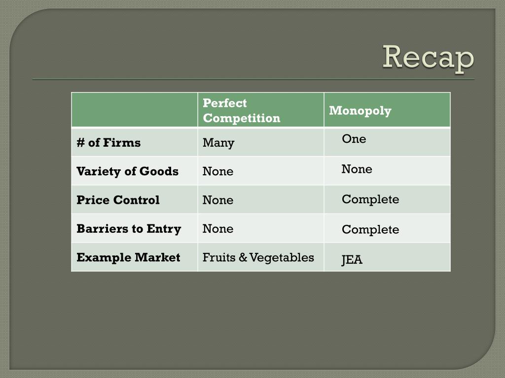 Closure Choose two types of monopolies we discussed and compare them with the person next to you. Be prepared to share your answers.