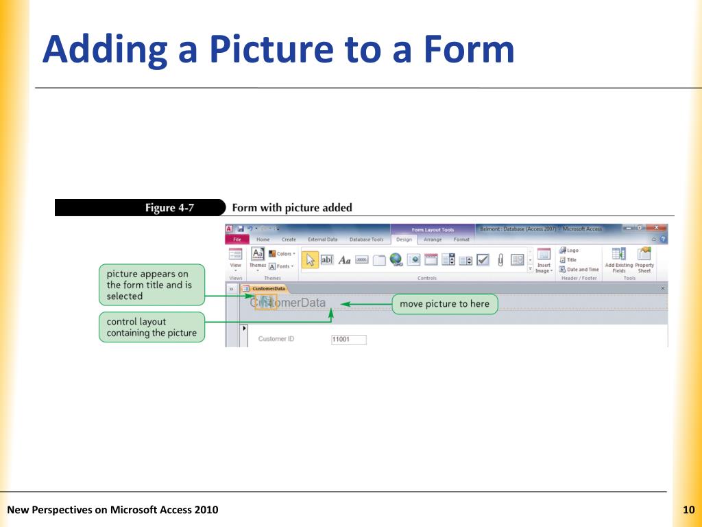 Adding a Picture to a Form New Perspectives on Microsoft Access 2010