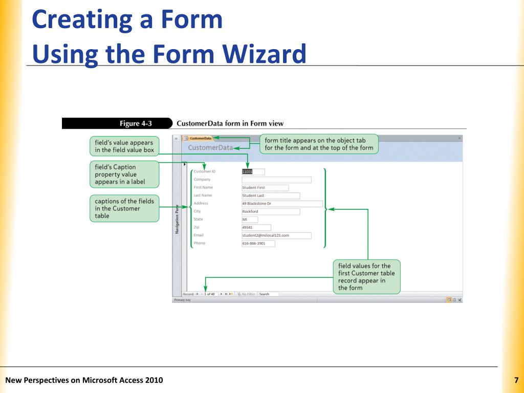 Creating a Form Using the Form Wizard New Perspectives on Microsoft Access 2010