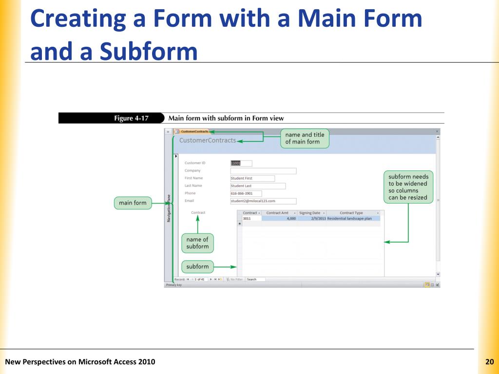 Creating a Form with a Main Form and a Subform New Perspectives on Microsoft Access 2010