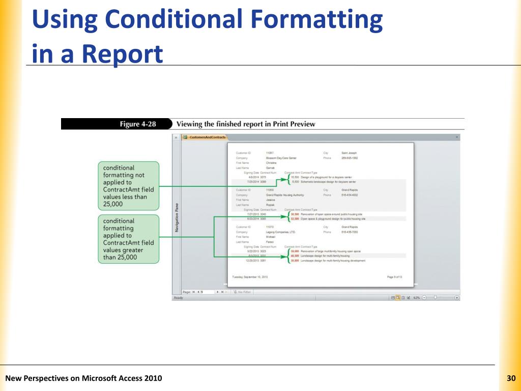 Using Conditional Formatting in a Report New Perspectives on Microsoft Access 2010