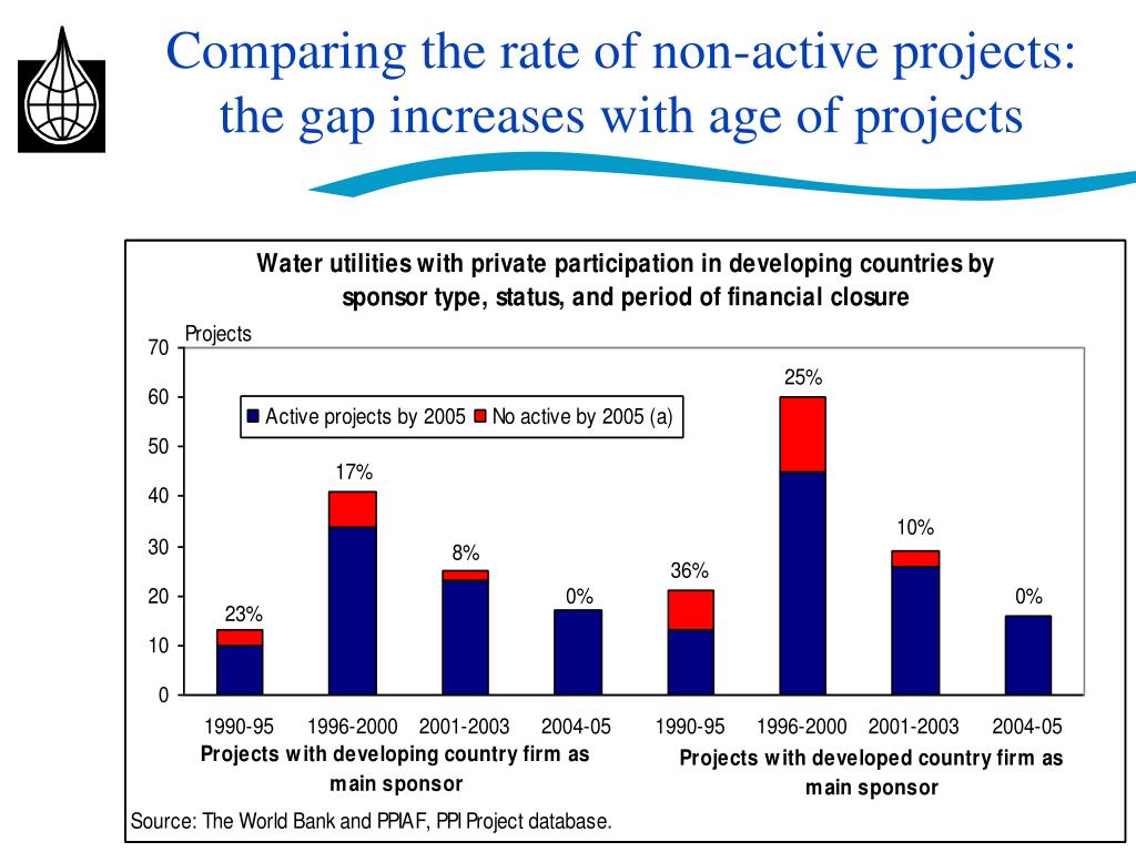 Number of water PPP project: the growing share of developing countries sponsors