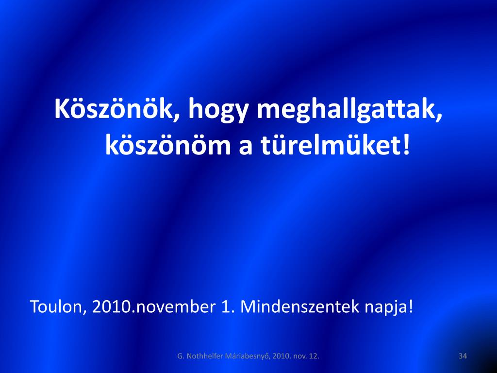 Köszönök, hogy meghallgattak, köszönöm a türelmüket! Toulon, 2010.november 1. Mindenszentek napja! G. Nothhelfer Máriabesnyő, 2010. nov. 12.