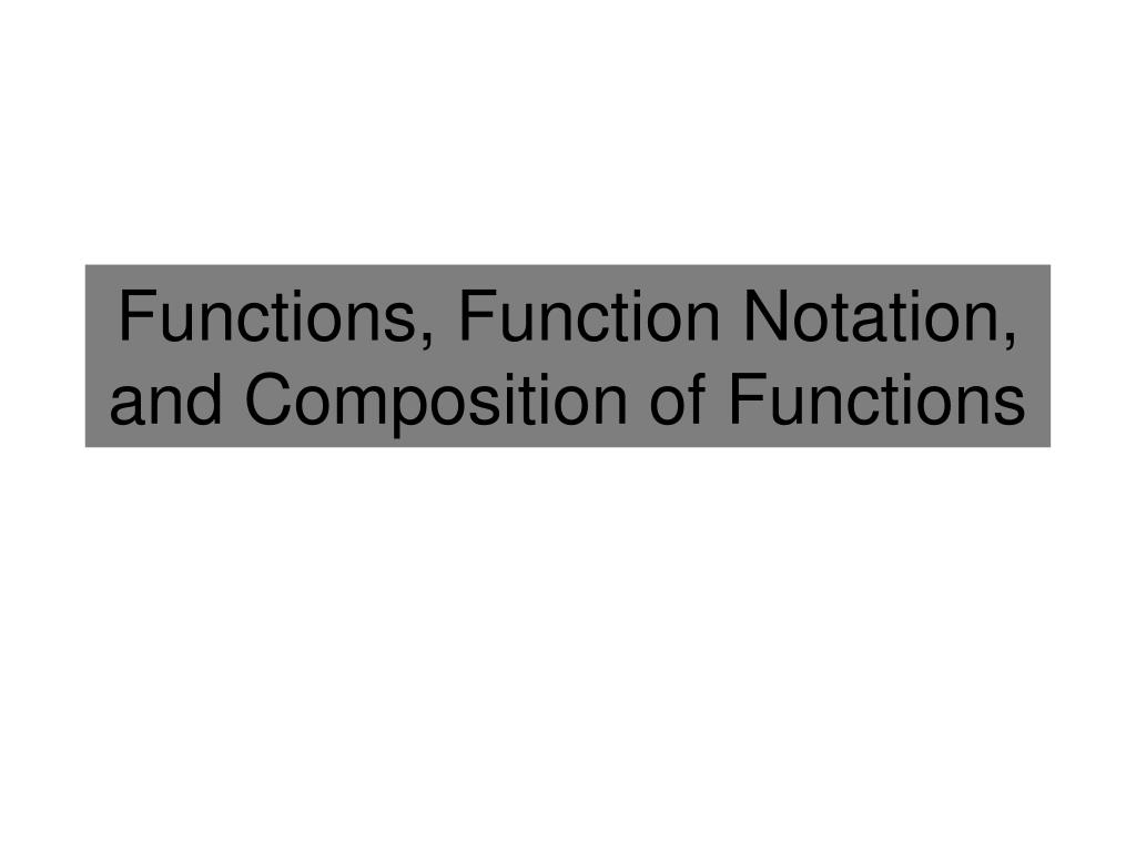 Functions, Function Notation, and Composition of Functions. A Way to Describe a Relationship. We have worked with many mathematical objects. For instance: equations, rules, formulas, tables, graphs, etc. In mathematics , similar things can also be described by the following vocabulary . .