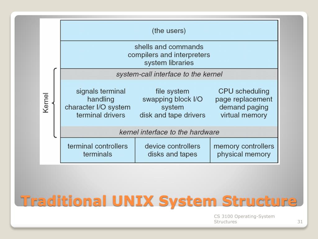 Traditional UNIX System Structure CS 3100 Operating-System Structures