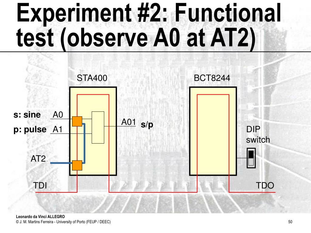 Experiment #2: Functional test (observe A0 at AT2) STA400 BCT8244 s: sine A0 A01 s/p p: pulse A1 DIP switch AT2 TDI TDO
