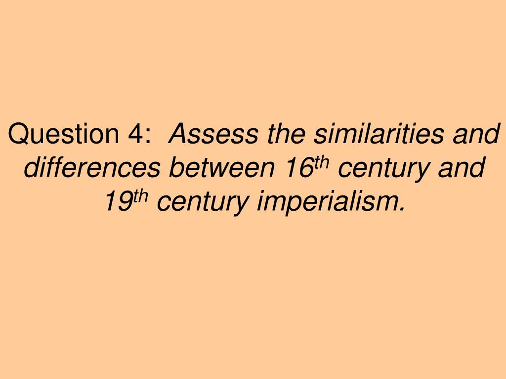 Question 4: Assess the similarities and differences between 16th century and 19th century imperialism.