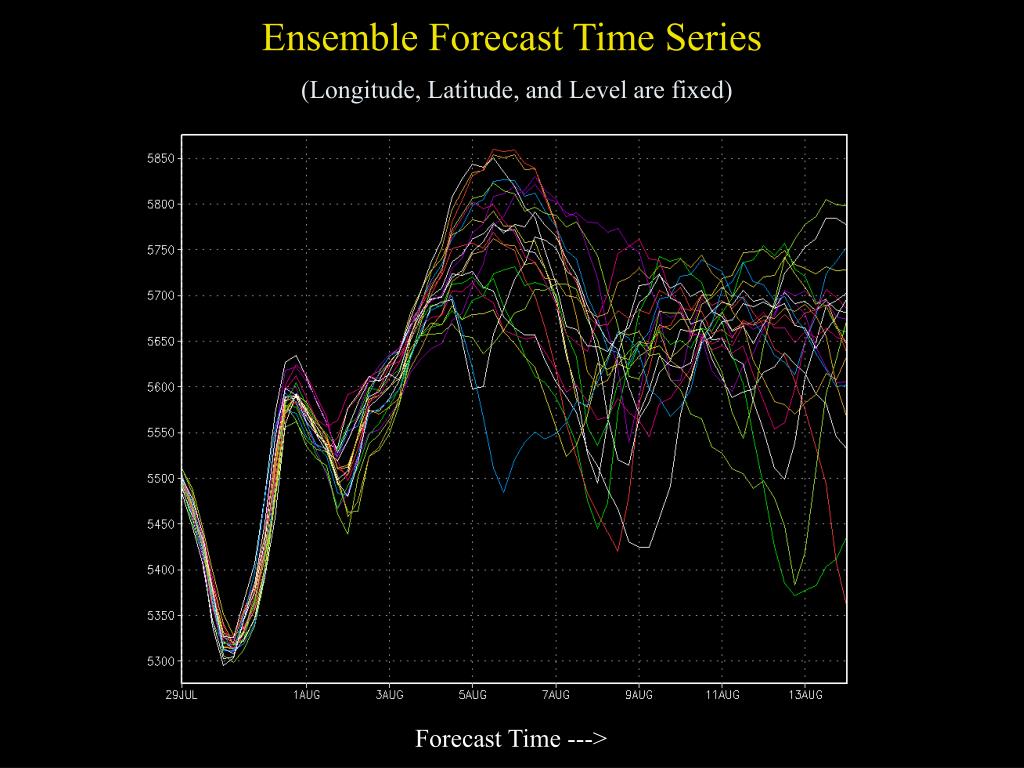 Ensemble Forecast Time Series(Longitude, Latitude, and Level are fixed) Forecast Time --->