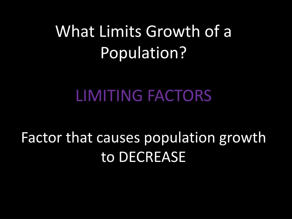 What Limits Growth of a Population?LIMITING FACTORSFactor that causes population growth to DECREASE