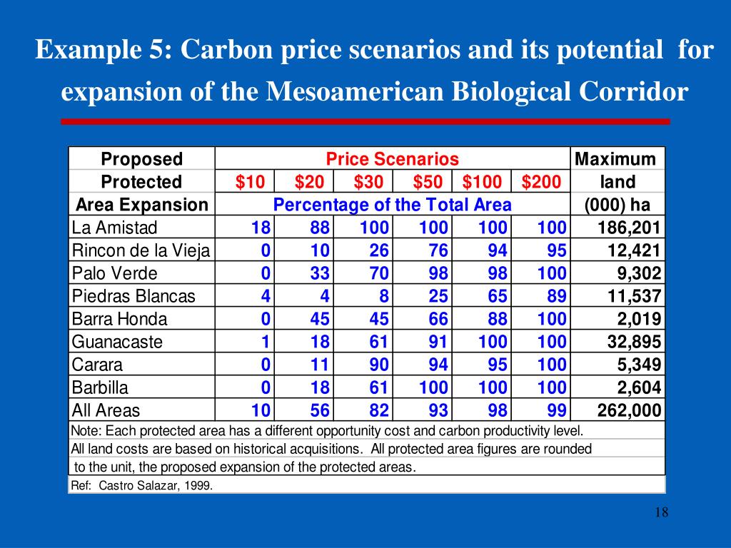 Example 5: Carbon price scenarios and its potential for expansion of the Mesoamerican Biological Corridor