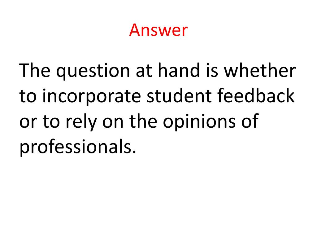 Answer The question at hand is whether to incorporate student feedback or to rely on the opinions of professionals.