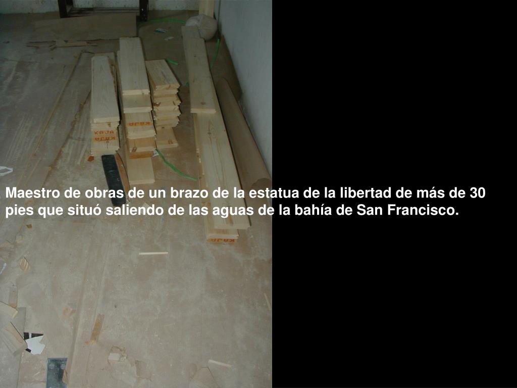 Maestro de obras de un brazo de la estatua de la libertad de más de 30 pies que situó saliendo de las aguas de la bahía de San Francisco.