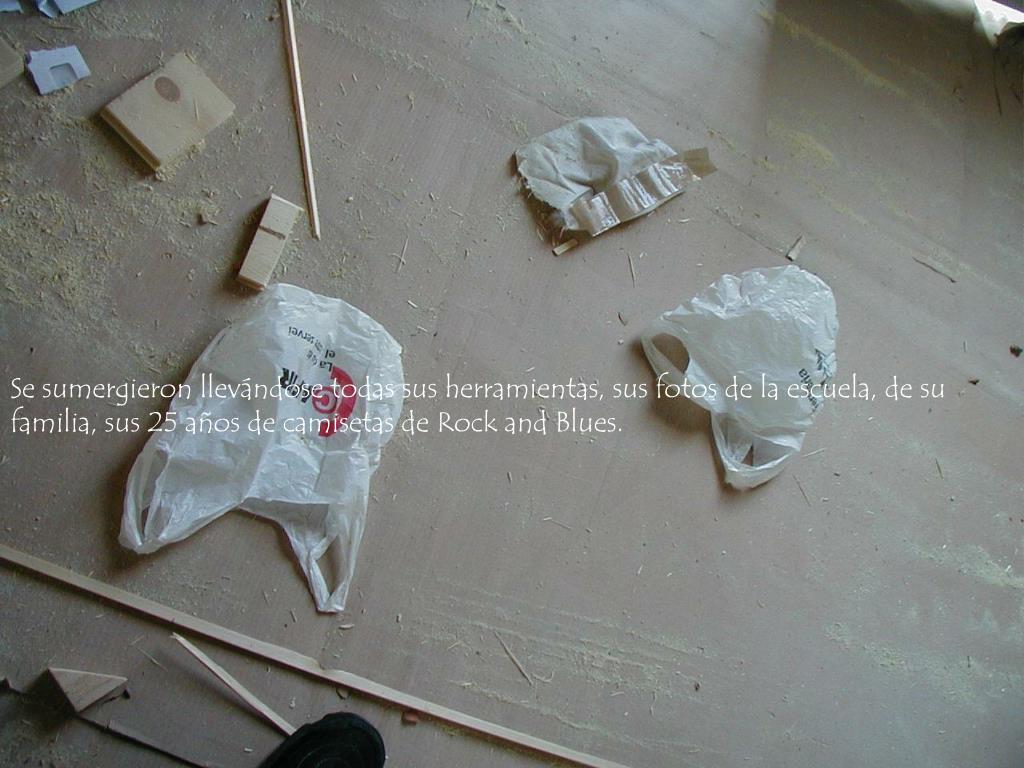 Se sumergieron llevándose todas sus herramientas, sus fotos de la escuela, de su familia, sus 25 años de camisetas de Rock and Blues.