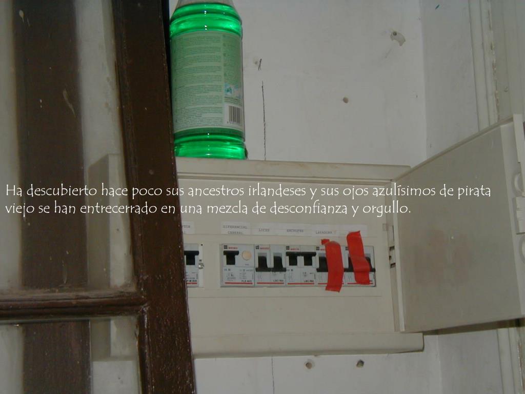 Ha descubierto hace poco sus ancestros irlandeses y sus ojos azulísimos de pirata viejo se han entrecerrado en una mezcla de desconfianza y orgullo.