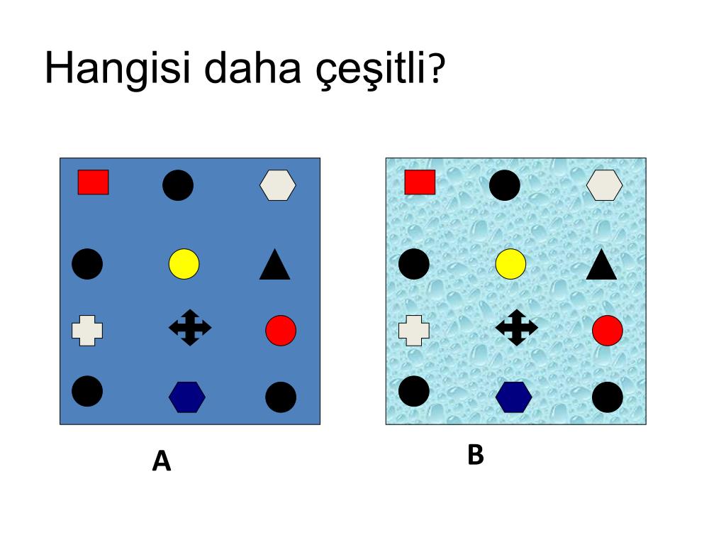 Özel İzmir SEV İÖO – EKO-Okullar projesi 2010. Biyolojik Çeşitlilik Nedir?. Hangisinde daha çok çeşit var?. Hangisinde daha çok çeşit var?. Hangisinde daha çok çeşit var?. B. A. Hangisi daha çeşitli ?. B. A. Hangisinde daha çok çeşit var ?. A. B. Hangisinde daha çok çeşit var?. A. B.