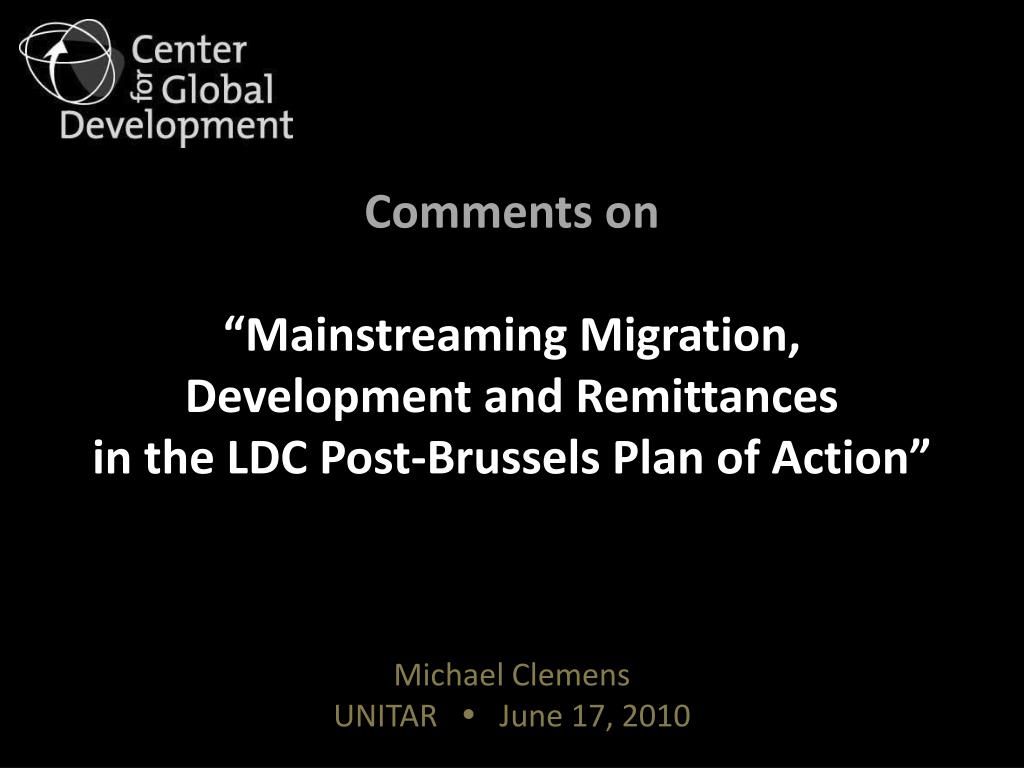Comments on“Mainstreaming Migration,Development and Remittancesin the LDC Post-Brussels Plan of Action” Michael Clemens UNITAR June 17, 2010