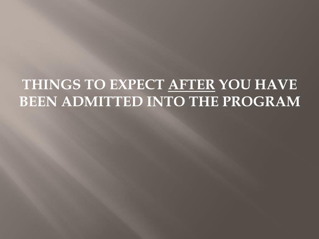 THINGS TO EXPECT AFTER YOU HAVE BEEN ADMITTED INTO THE PROGRAM