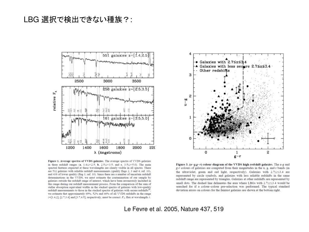 LBG 選択で検出できない種族?: Le Fevre et al. 2005, Nature 437, 519