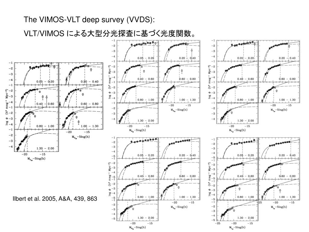 The VIMOS-VLT deep survey (VVDS): VLT/VIMOS による大型分光探査に基づく光度関数。 Ilbert et al. 2005, A&A, 439, 863