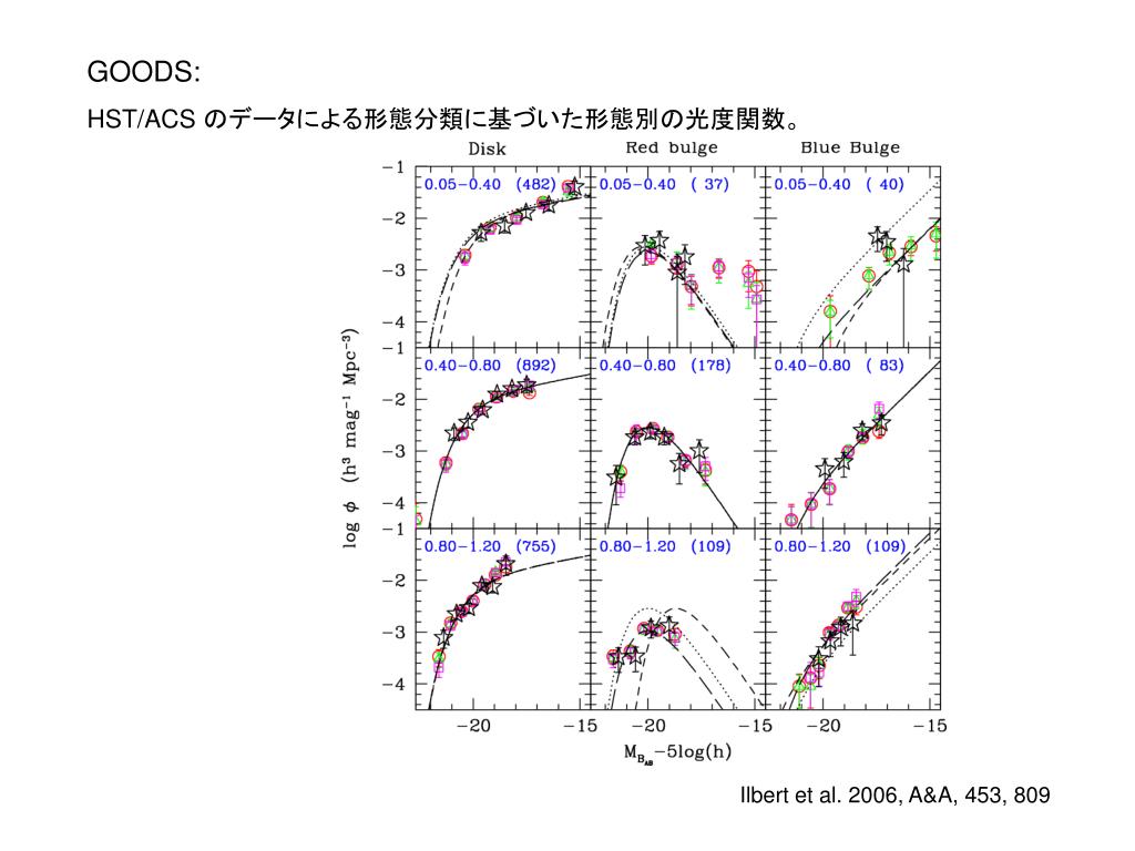 GOODS: HST/ACS のデータによる形態分類に基づいた形態別の光度関数。 Ilbert et al. 2006, A&A, 453, 809