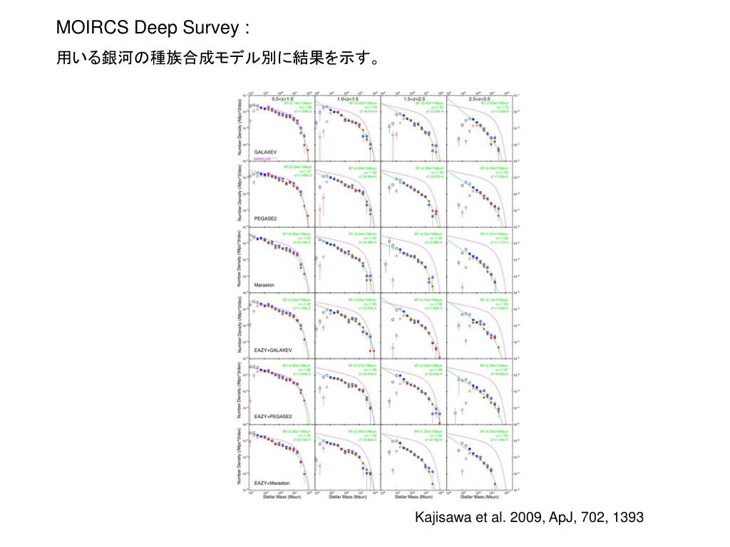 MOIRCS Deep Survey : 用いる銀河の種族合成モデル別に結果を示す。 Kajisawa et al. 2009, ApJ, 702, 1393