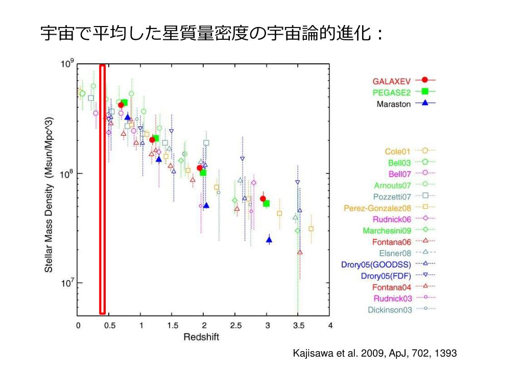 宇宙で平均した星質量密度の宇宙論的進化: Kajisawa et al. 2009, ApJ, 702, 1393