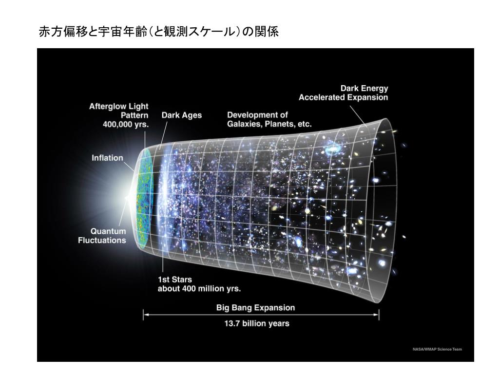 赤方偏移と宇宙年齢(と観測スケール)の関係赤方偏移と宇宙年齢(と観測スケール)の関係