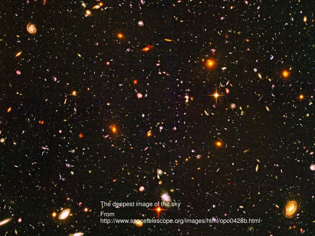 The deepest image of the sky From http://www.spacetelescope.org/images/html/opo0428b.html