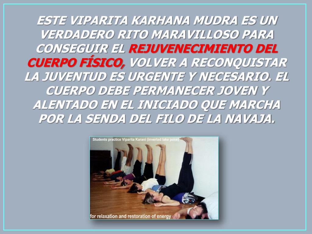 ESTE VIPARITA KARHANA MUDRA ES UN VERDADERO RITO MARAVILLOSO PARA CONSEGUIR EL REJUVENECIMIENTO DEL CUERPO FÍSICO, VOLVER A RECONQUISTAR LA JUVENTUD ES URGENTE Y NECESARIO. EL CUERPO DEBE PERMANECER JOVEN Y ALENTADO EN EL INICIADO QUE MARCHA POR LA SENDA DEL FILO DE LA NAVAJA.