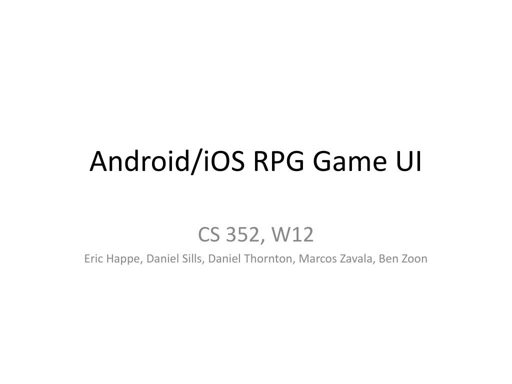Android/iOS RPG Game UI CS 352, W12 Eric Happe, Daniel Sills, Daniel Thornton, Marcos Zavala, Ben Zoon