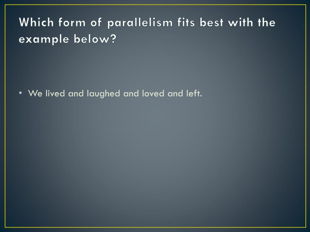 Which form of parallelism fits best with the example below? • We lived and laughed and loved and left.