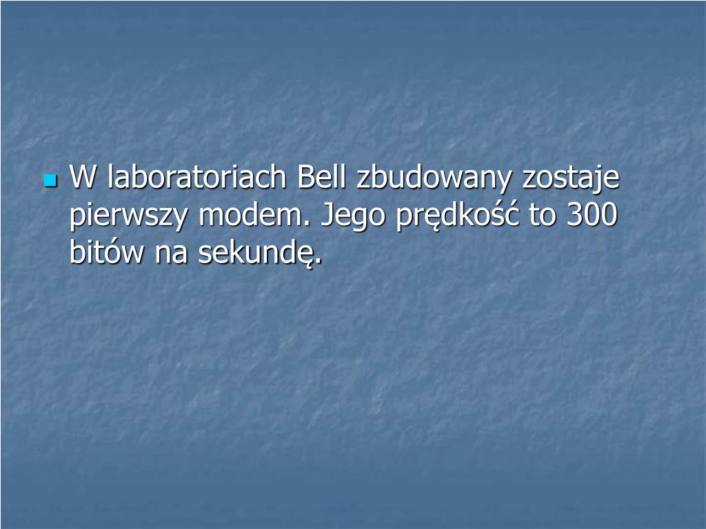 W laboratoriach Bell zbudowany zostaje pierwszy modem. Jego prędkość to 300 bitów na sekundę.