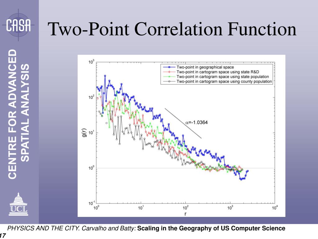 Scaling in the Geography of US Computer Science Rui Carvalho and Michael Batty University College London rui.carvalho@ucl.ac.uk m.batty@ucl.ac.uk http://www.casa.ucl.ac.uk/ Thanks: Michael Gastner (SFI),Isaac Councill (PSU),Chris Brunsdon (Leicester),Ben Gimpert (UCL)