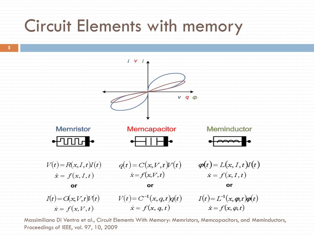 Circuit Elements with memory Massimiliano Di Ventra et al., Circuit Elements With Memory: Memristors, Memcapacitors, and Meminductors, Proceedings of IEEE, vol. 97, 10, 2009
