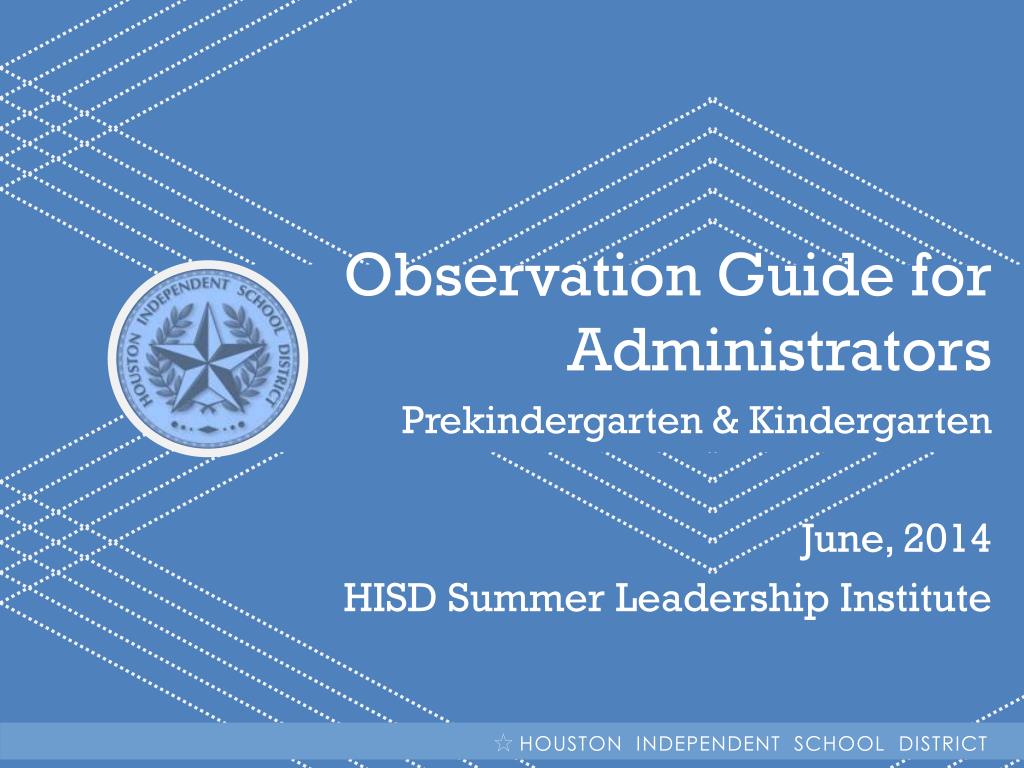 Observation Guide for Administrators Prekindergarten & Kindergarten June, 2014 HISD Summer Leadership Institute HOUSTON INDEPENDENT SCHOOL DISTRICT