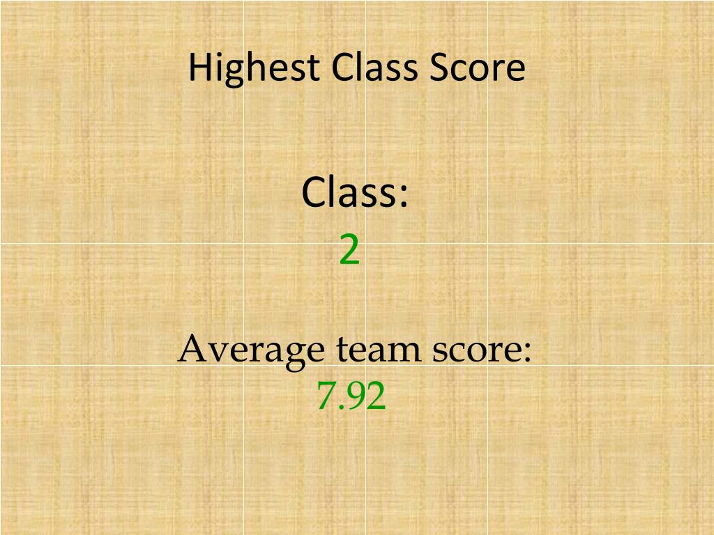 Highest Class Score Class: 2 Average team score: 7.92