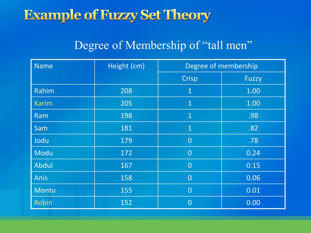 Example of Fuzzy Set Theory Degree of Membership of “tall men”