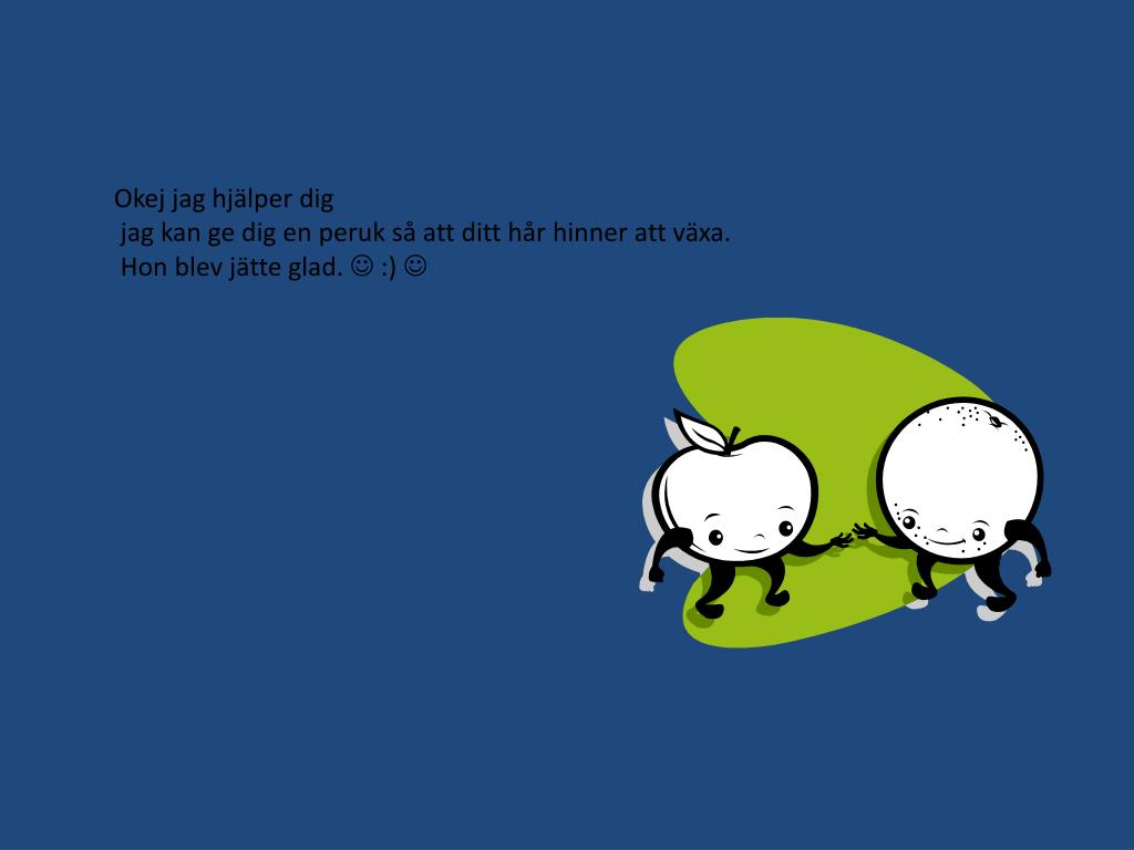 Okej jag hjälper dig jag kan ge dig en peruk så att ditt hår hinner att växa. Hon blev jätte glad. :)