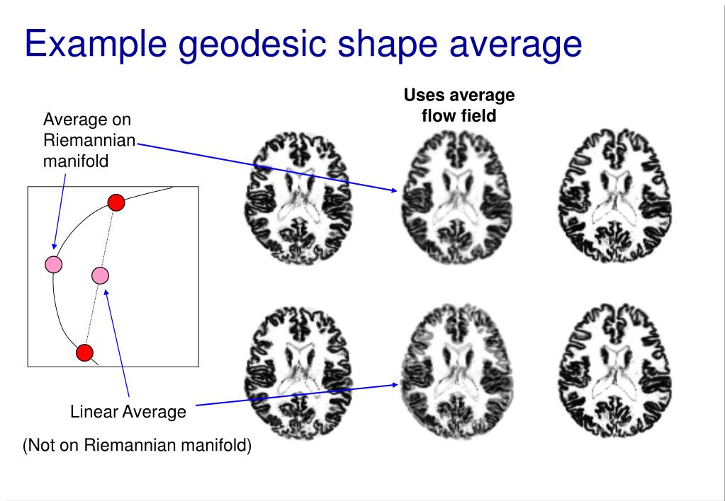 Example geodesic shape average Uses average flow field Average on Riemannian manifold Linear Average (Not on Riemannian manifold)