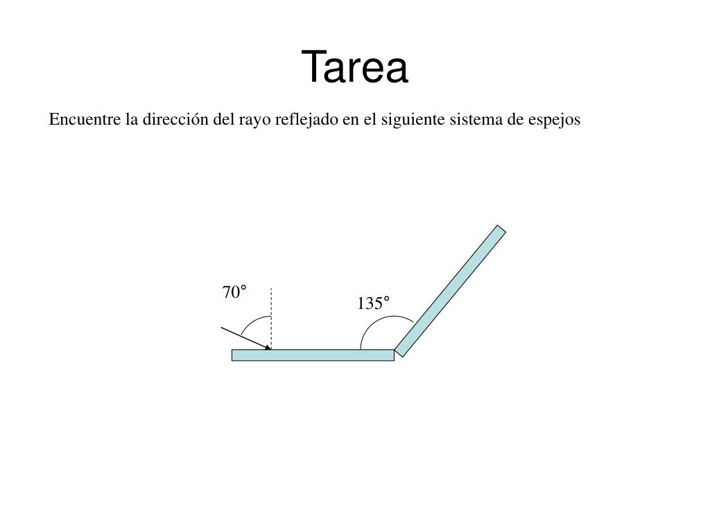 Tarea Encuentre la dirección del rayo reflejado en el siguiente sistema de espejos 70° 135°