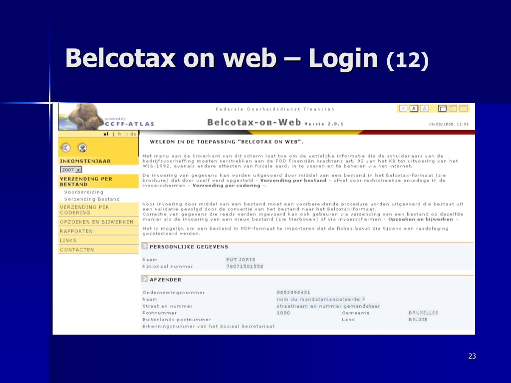 Belcotax on web – Login (4) www.belcotaxonweb.be