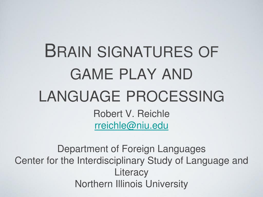Brain signatures of game play and language processing • Robert V. Reichle • rreichle@niu.edu • Department of Foreign Languages • Center for the Interdisciplinary Study of Language and Literacy • Northern Illinois University