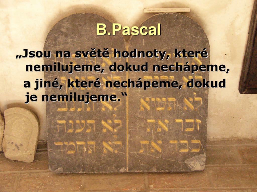 B.Pascal „Jsou na světě hodnoty, které nemilujeme, dokud nechápeme, a jiné, které nechápeme, dokud je nemilujeme.“