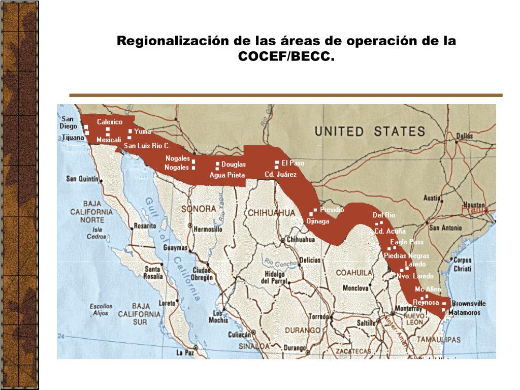Regionalización de las áreas de operación de la COCEF/BECC.